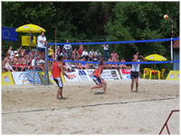 für Tag an den Strandmeisterschaften (Beachvolleyball, Fußball,