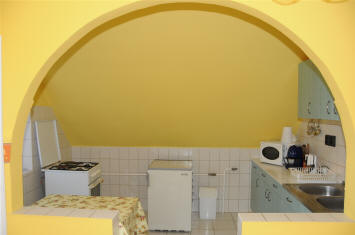 Kühlschrank, Gasherd usw., Badezimmer mit Dusche, WC sep., gemütliche Einrichtung .