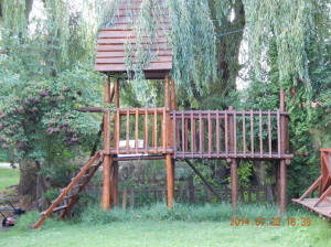 Das Haus befindet sich in einer Nebenstraße in ruhiger Lage (Németh L. utca) 350 m vom See entfernt, aber trotzdem in Nähe des Zentrums. In diesem  Massiv-Holzhaus bieten wir 5 Appartements an. Alle Appartements haben WLAN und sind Klimatisiert. Im Haus befinden sich 2 Appartements für  4 Personen und 2 Appartements für 6 Personen. Die fünfte Wohnung für 10 Personen ist unter " Fenyves 22 " beschrieben. Die App. sind in der Einrichtung alle ähnlich ausgestattet.  Bei allen Appartements sind im Erdgeschoss folgende Zimmer: Koch- und Essecke mit dazugehörigen Küchengeräten, wie: Kühlschrank, Kaffeemaschine, Herd etc., Wohnzimmer mit TV-Sat, Bad mit Dusche und WC. Vor dem Eingang ist für jedes App. eine dazugehörige Terrasse mit Gartenmöbeln vorhanden. Im Obergeschoss befinden sich die 2 Schlafzimmer mit Ausgang zu jeweils sep. Balkon. Die Zimmer sind modern und geschmackvoll eingerichtet. Der große begrünte Garten, mit Spielecke. Pool und Grill ist für alle Urlauber zugänglich. Autos können im Hof geparkt werden.
